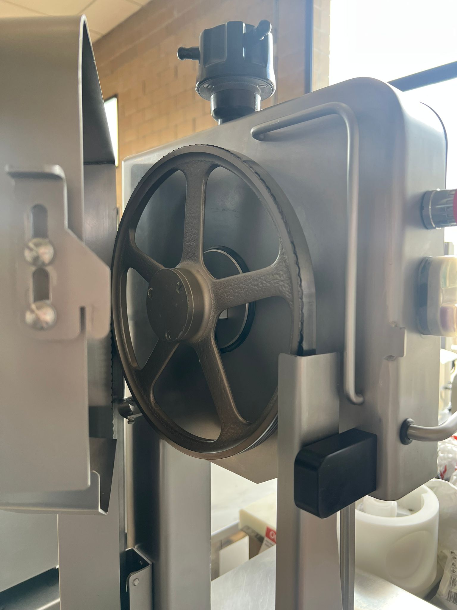 Serra cinta BC-2000 construïda en acer inoxidable, trifàsica; cinta de 2120 mm; tensor de cinta automàtic i carro.